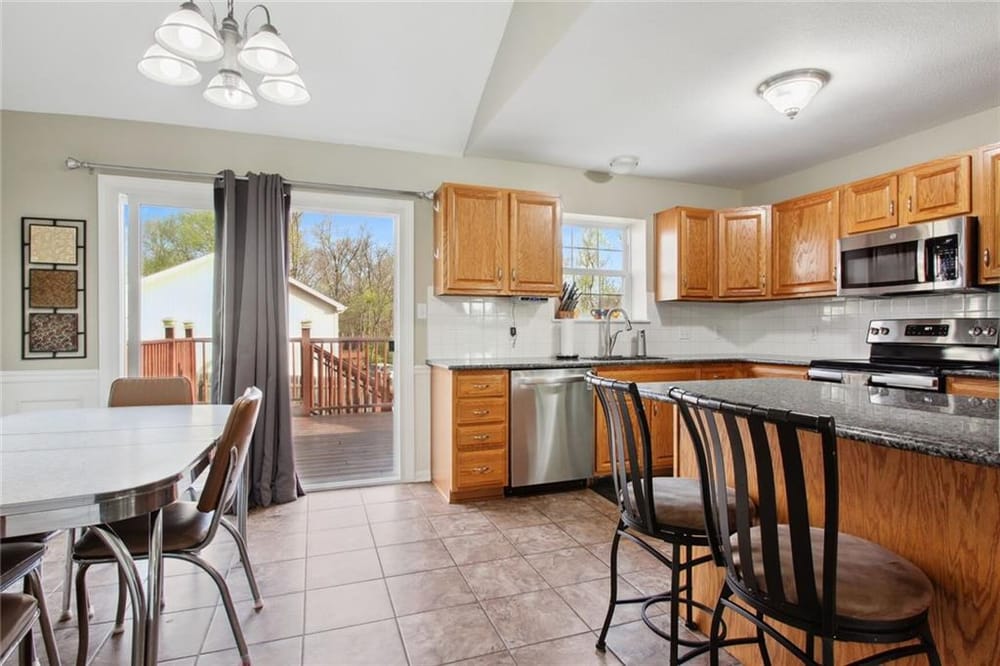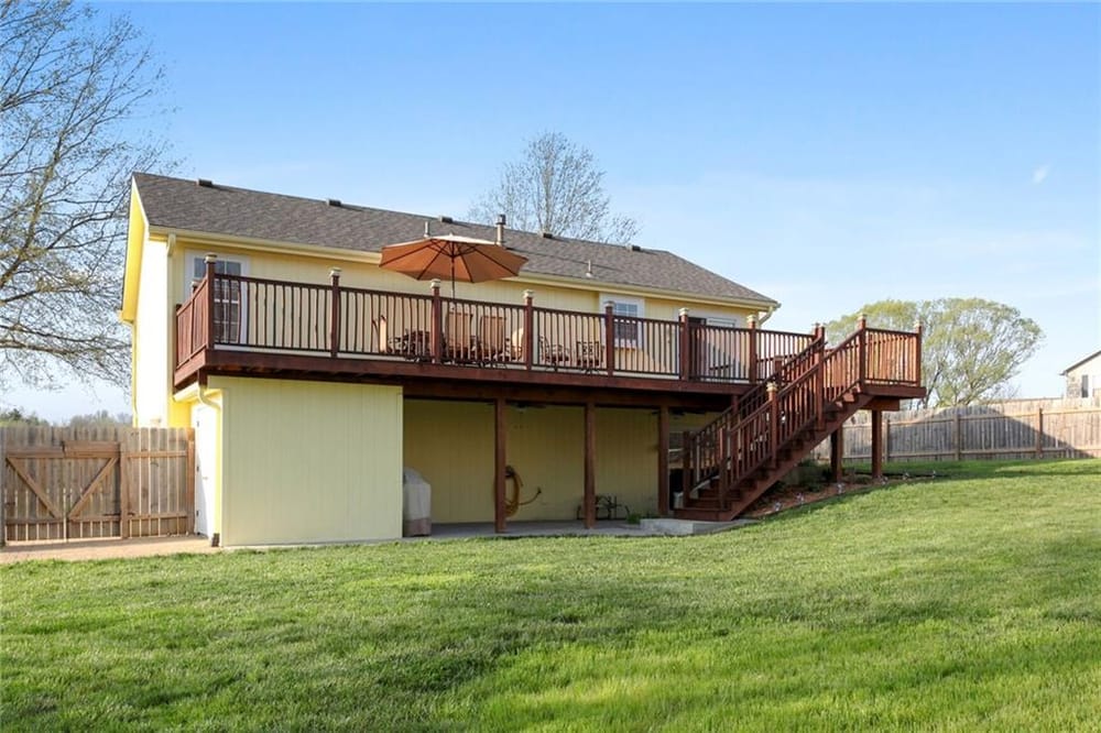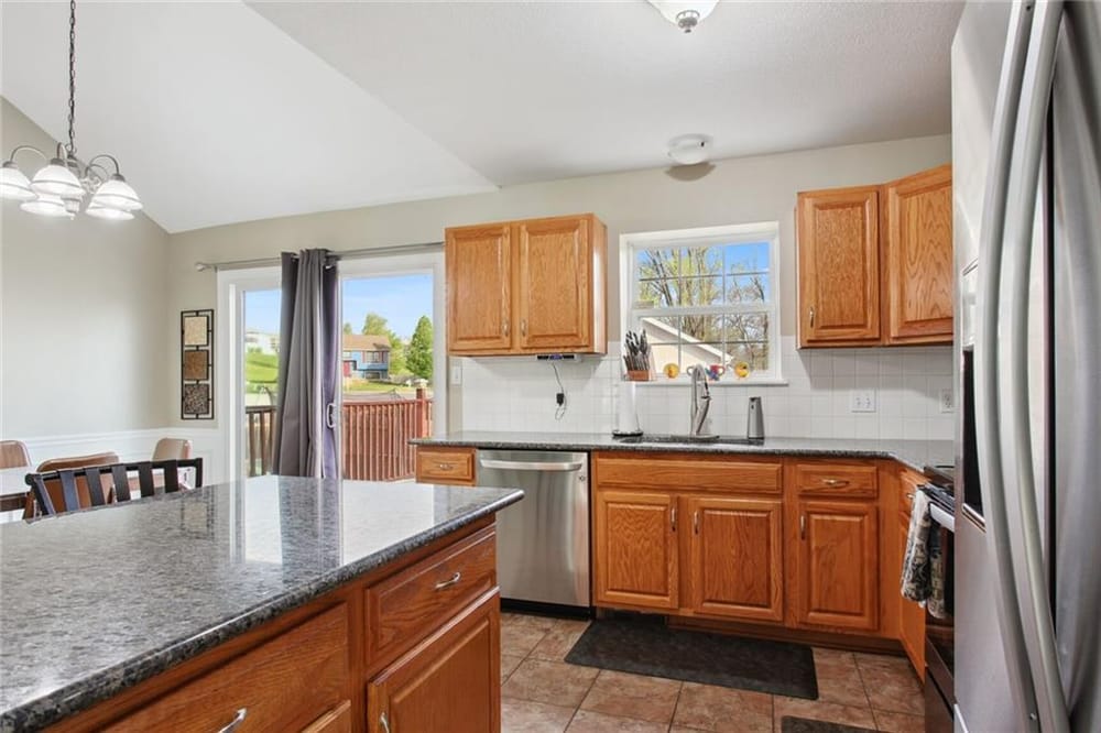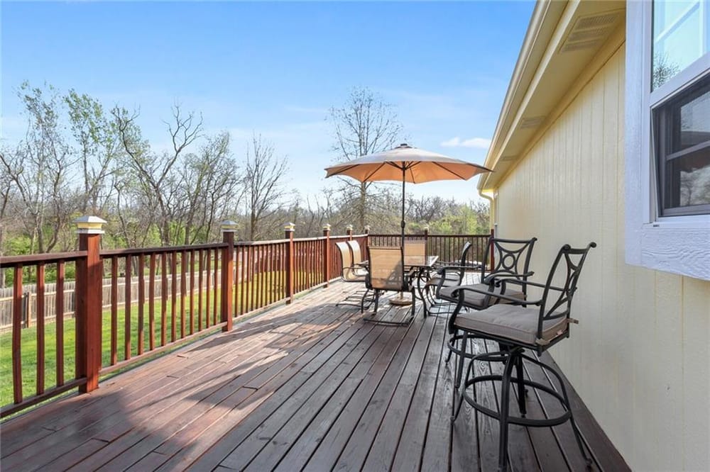 Welcome home to the serene Oak Creek Subdivision! This meticulously maintained 3-bedroom, 2.5-bathroom residence boasts modern upgrades & newer features throughout. As you step into the inviting Entryway, you’ll be greeted by a soaring Vaulted Ceiling, complemented by a Leaded Glass Front Door equipped with a convenient Ring doorbell. The Main Level seamlessly flows into a spacious Living Room, complete with a Gas Fireplace & a double vinyl window adorned with an elegant arch. The heart of the home lies in the Eat-In Kitchen, where Granite Countertops, Newer Appliances, & a vinyl Sliding Door Walkout to the deck await. Whether you’re hosting gatherings or enjoying quiet mornings, the Expansive Deck overlooking the fenced yard that backs to an undeveloped, private cul-de-sac offers the perfect setting for relaxation and entertainment. Retreat to the spacious Master Bedroom featuring a Vaulted Ceiling & a generous Walk-in Closet, along with an Ensuite Bathroom for added convenience. Two additional Bedrooms & a Full Hall Bath complete the Main Level, providing ample space for family and guests. The Lower Level offers versatile living spaces, including a Family Room or an office or non-conforming bedroom- you decide!) with built-in shelves & a Walkout to a concrete patio, ideal for indoor-outdoor living. A convenient Half Bathroom, Laundry Area, Utility Area, & a 2-car Garage with insulated doors and electric openers round out this level, providing ample storage and functionality. Exterior highlights include a Side Entry Garage with a Long level driveway, a Large Fenced Backyard, a Shed & beautifully Updated Landscaping, ensuring curb appeal and outdoor enjoyment year-round. This tranquil backyard & large deck with covered patio is amazing! Conveniently located within the Platte County School District & great Highway Access, it is the perfect place to call home. Don’t miss your chance to experience comfort, style, & tranquility in one of Oak Creek’s finest residences!